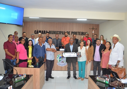 Com a presença do prefeito Alboíno Miranda Tavares Neto (Dr. Alboino, que dividiu a tribuna com o ex-prefeito Manoel Novais Miranda, secretário de Obras Tadeu Novais e o influenciador digital Leonardo dos Santos, o ‘Rei da Trena) entre os convidados do dia, a Câmara Municipal de Porteiras votou e aprovou por unanimidade o projeto de Lei Nº 368, de 14 de abril de 2025, que dispõe sobre as Diretrizes Orçamentárias 2026, do Executivo. Requerimentos parlamentares e homenagens também compuseram a pauta da Sessão Ordinária do dia 06 de junho de 2025.